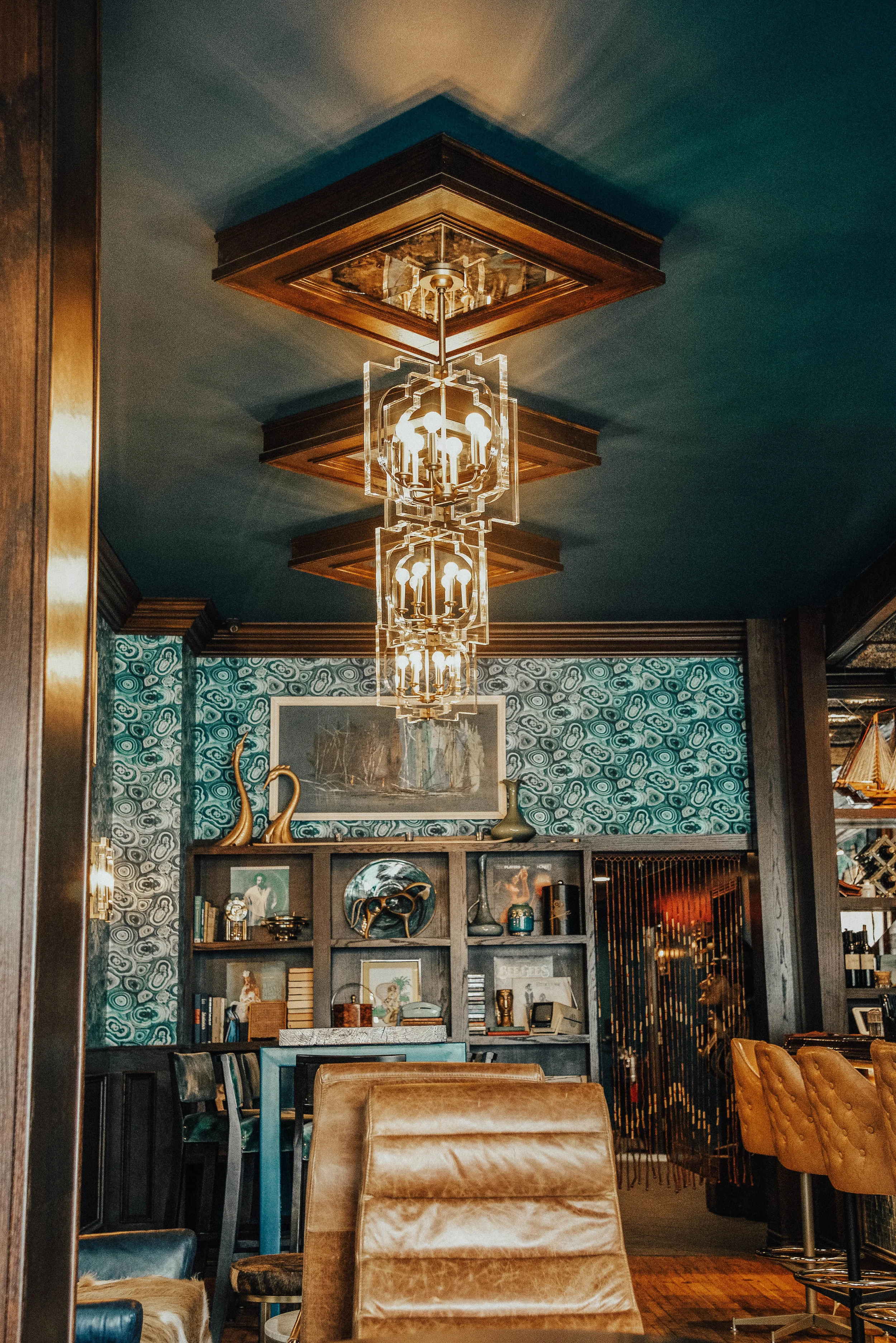 When you enter, you are transported to classic, art deco dreamland. Everything about it is beautiful and comforting. I don't think that I have been in a space before that is so predominately blue but exudes warmth. From a design perspective, they used the most rich colors and unexpected finishes. It all melds together to create this 'period piece' of a lounge that makes you feel like you are in a significant place.